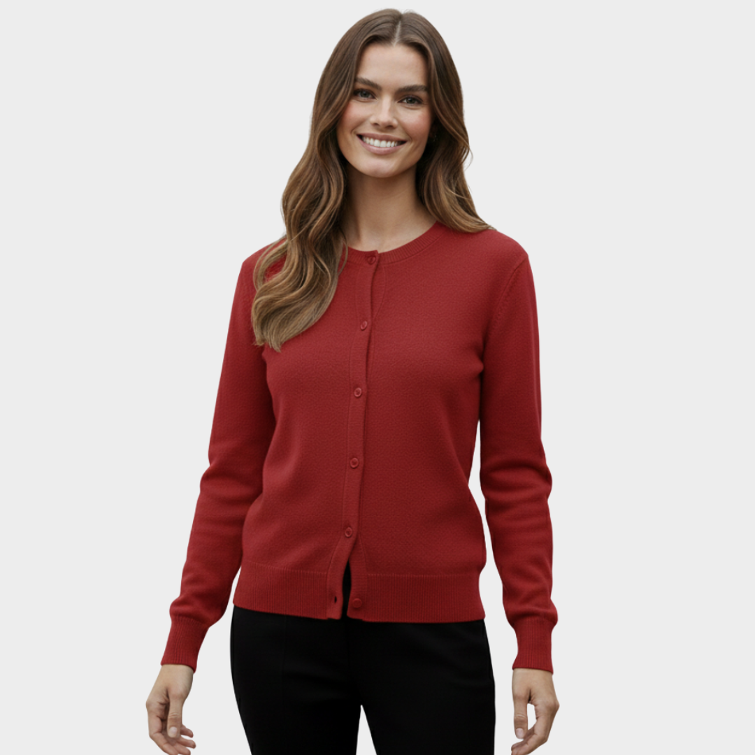 Classic button-front cardigan design for versatile styling